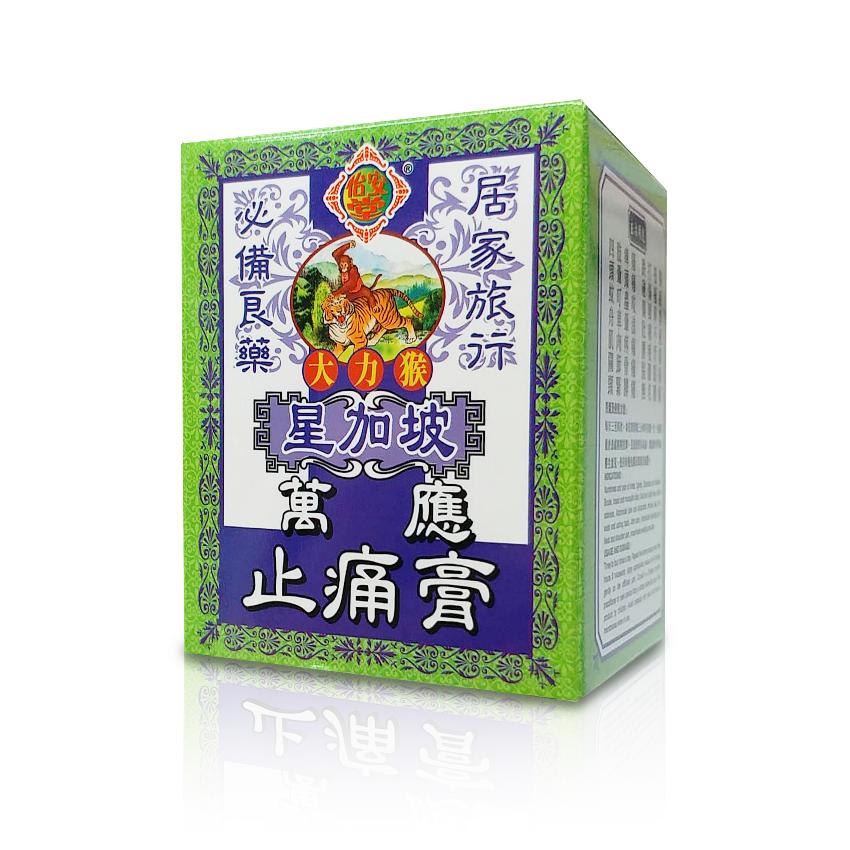怡安堂星加坡大力猴萬應止痛膏乃老牌正藥,歷史悠久,本公司一直本著用心製藥、嚴選用料、濟世利人、正藥無欺為宗旨。產品氣味芬芳。功能消腫止痛、舒筋活絡、行氣活血、驅風散瘀。本藥膏尤對關節骨痛、頸緊膊痛、四肢痺痛、頭暈頭痛等症狀確有功效。實為居家旅行必備之良藥,大眾四季必備之旁身至寶。